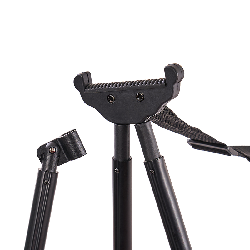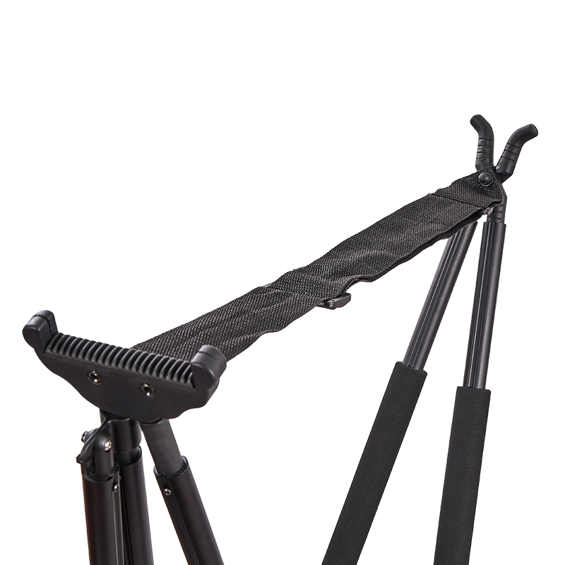 For the steadiest rest place the gun stock as forward as possible on the sticks, thus allowing the rear legs to make contact with your body. Always hold the forearm of your rifle with a slight downward pressure on the sticks to steady it further. This hold prevents any rocking motion and locks the sticks in place as if shooting off a standing bench. This is ideal when