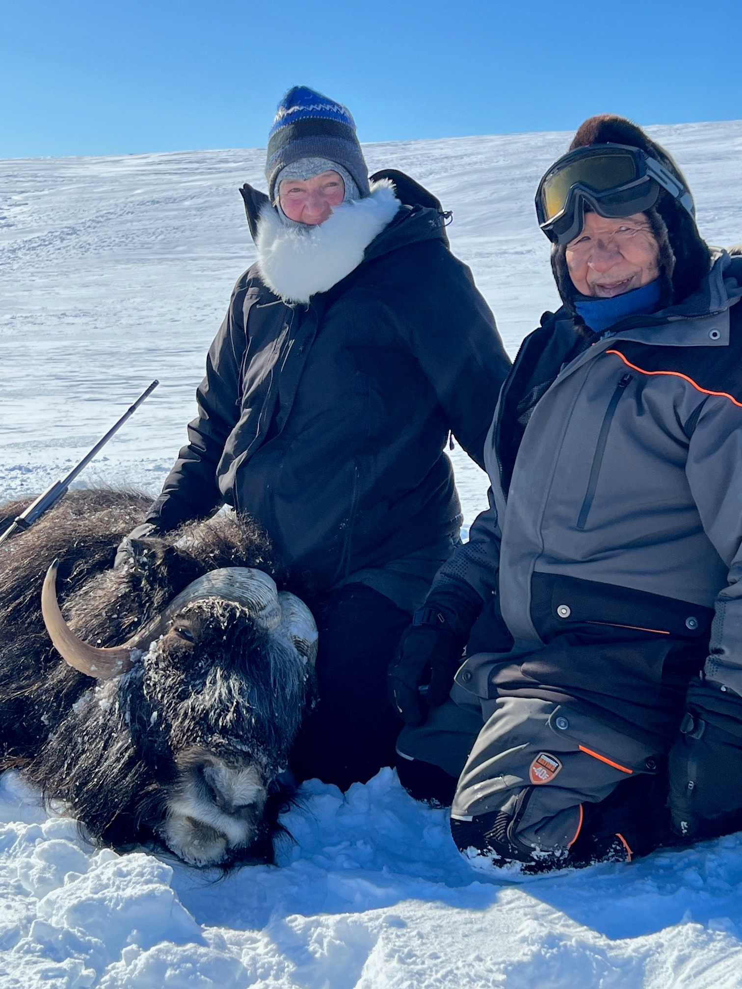 We got on a skittish group of Musk Ox with a lot of yearling calves, many cows and a few nice bulls. They never really balled up and stood their ground. One nice bull stepped forward enough to clear a younger bull overlapping him. I was able to jam the GunStix in nicely to the snow, seated. Took a fine bull at 150yds with my Kimber 300 WM on Nunivak Island Alaska March 22, 2024.