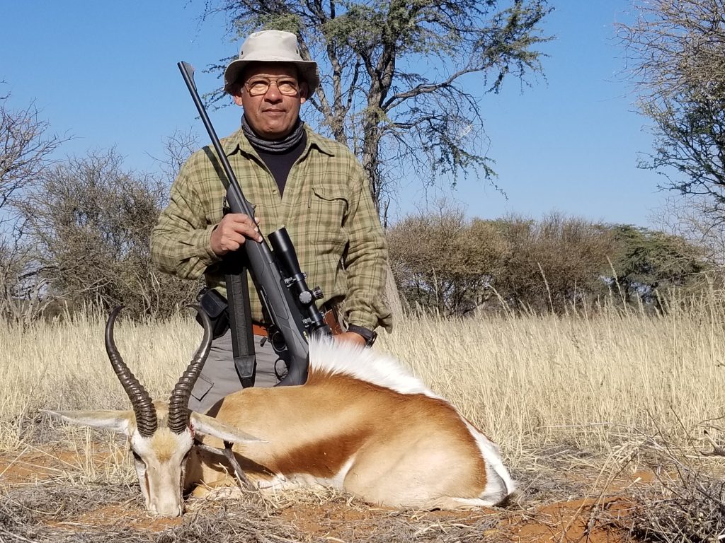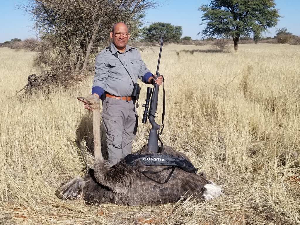 I just returned from a fantastic plains game hunt in Namibia. Took some long shots, 428 yards on the Springbok and 385 yards on the Ostrich. No way would these shots have been possible using the PH’s tripod wooden sticks. Impossible shots without the GunStix quad legged shooting system.