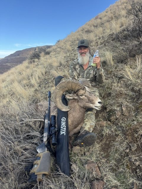 We were on a nearly vertical hillside when the ram walked up on us. By the time I could unshoulder the rifle and chamber a round, my guide had deployed the GunStix. I laid my rifle into the system and made a quick 5th leg adjustment and sent a round through the Ram’s heart at 240 yards.
